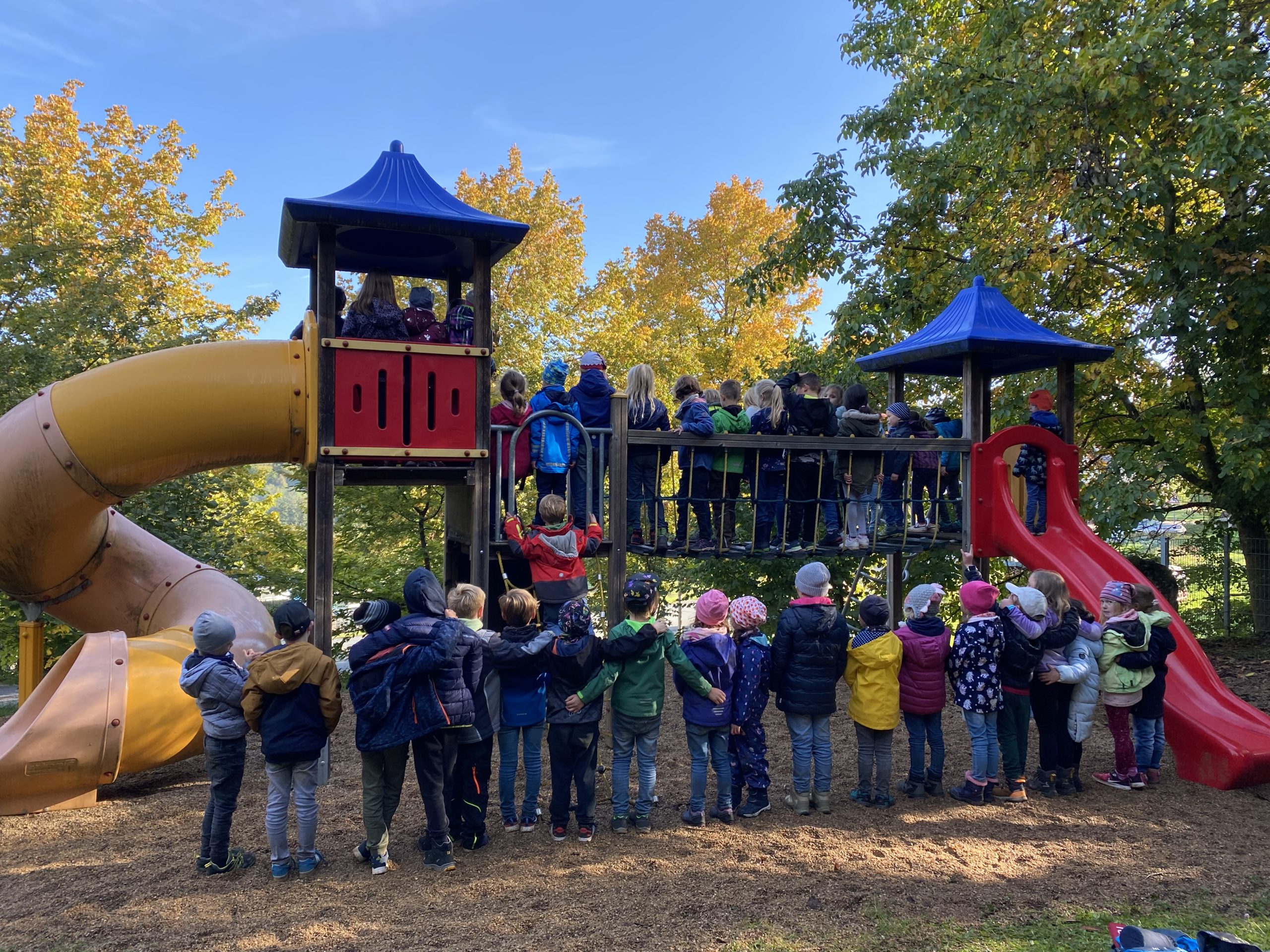 Die Klassen 1a und 2a wanderten gemeinsam zum Spielplatz nach Oberehrenbach. Nach einer ausgiebigen Brotzeit hatten die Kinder viel Spaß beim Spielen und Toben. Danach spazierten wir fröhlich wieder zurück zur Schule.